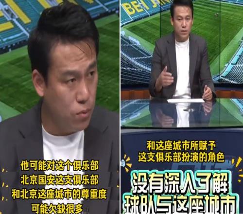 這位前國安球員接著認為,塞蒂恩對北京國安對抗山東泰山和上海申花這兩支“特殊的球隊”的歷史缺乏了解。“面對特殊的球隊,比如說跟上海(申花),跟山東(泰山)這樣的球隊,有一段歷史在里面,而且這段歷史是我們?yōu)橹湴梁秃茌x煌的一段歷史。”張曉彬娓娓道來。