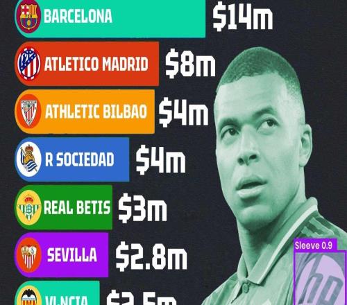 西甲袖標(biāo)贊助榜:皇馬2500萬(wàn)美元居首、巴薩馬競(jìng)分列二三